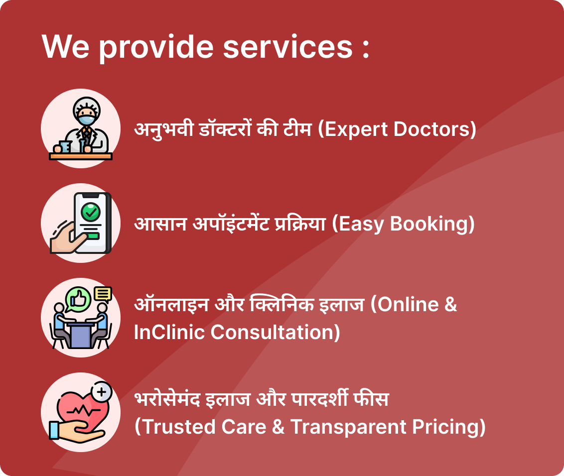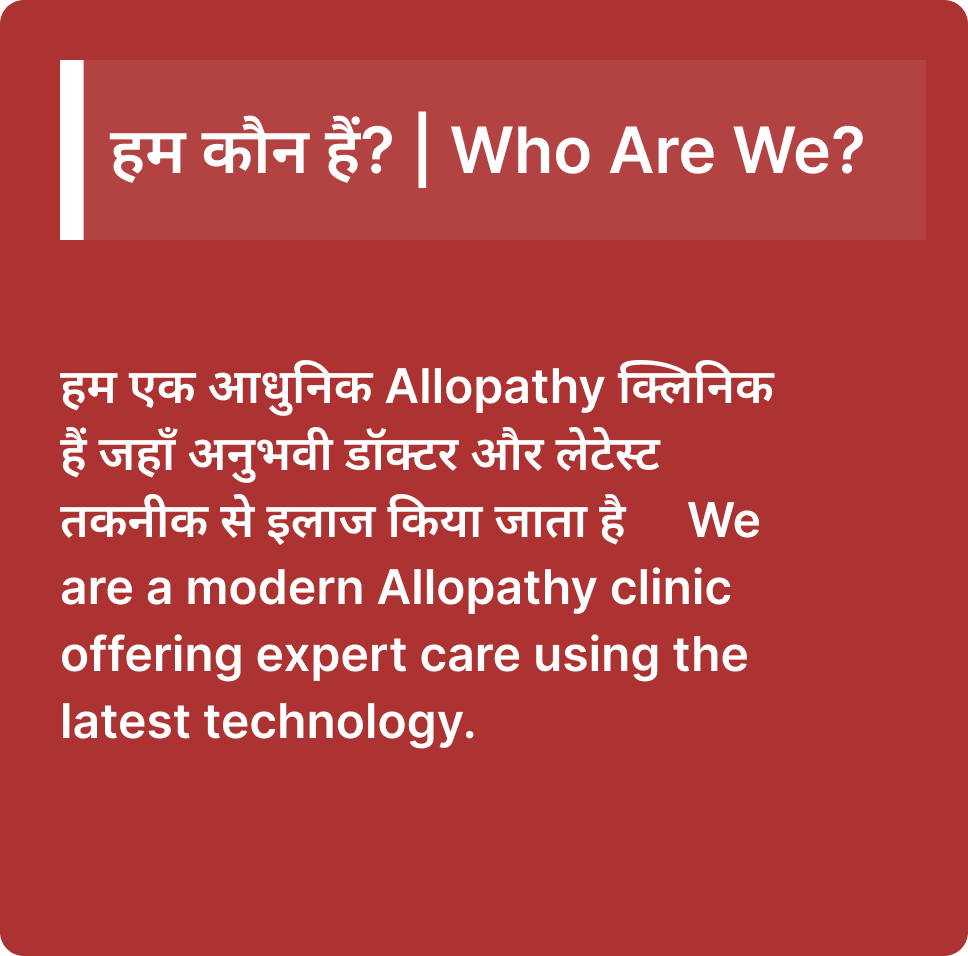 рд╣рдорд╛рд░реА рдЯреАрдо рдореЗрдВ рдЕрдиреБрднрд╡реА MBBS рдФрд░ MD рдбреЙрдХреНрдЯрд░ рд╣реИрдВ рдЬреЛ рд╣рд░ рд░реЛрдЧ рдХрд╛ рд╕рд╣реА рдЗрд▓рд╛рдЬ рдХрд░рддреЗ рд╣реИрдВред Our team includes experienced MBBS & MD doctors who provide the right treatment for every condition.тАЛ