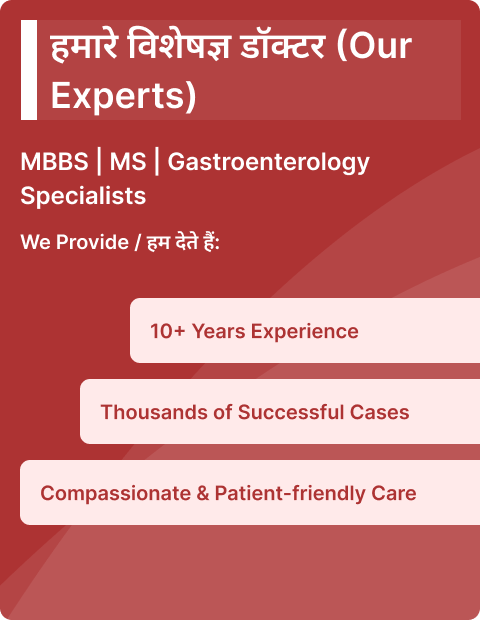 👨⚕️ अनुभवी डॉक्टर — 5+ साल का अनुभव 🩺 1,00,000+ मरीजों का सफल इलाज 🌟 98% मरीज संतुष्टि दर